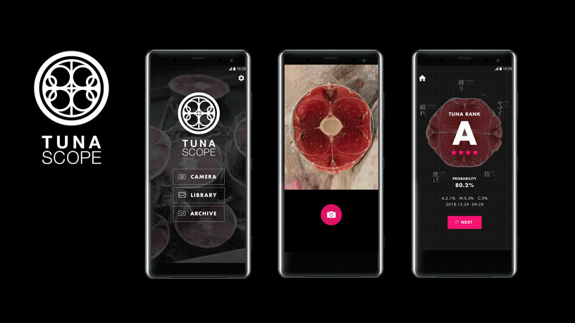 日本のマグロ職人が培った「目利き」の技をAI化した「TUNA SCOPE」。くら寿司では「AIまぐろ」※が想定の3倍の売上を記録し、現在はスーパーでも展開されています。