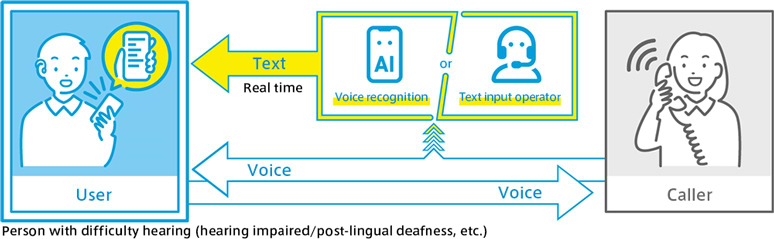 In addition, the method for converting the other caller’s voice to text allows users to choose between AI (automatic speech recognition) and text input operators, making it possible to use AI when prioritizing speed and seeking a more realistic phone conversation, and text input operators when seeking higher accuracy.