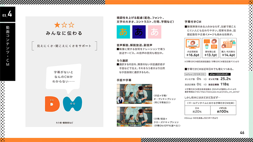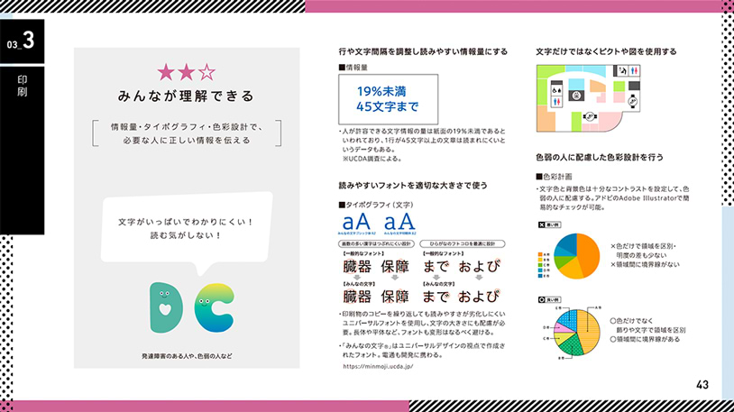 To give some straightforward examples, one needs to consider whether an easy-to-read font such as a universal design (UD) font is being used, whether sentences are kept from becoming overly long and difficult to follow, whether difficult kanji are accompanied by furigana, and whether colors are chosen with consideration for people with color vision impairments or older adults. There are many such points that deserve attention. However, my feeling is that many of these can be resolved simply with just a little consideration from the information provider.