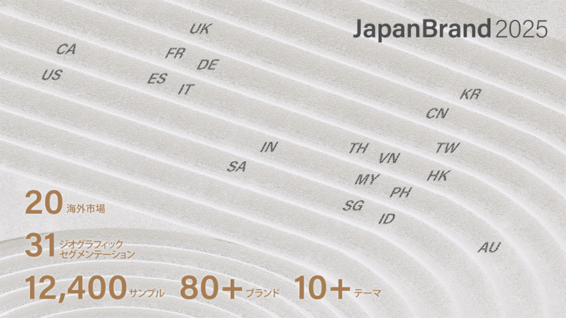【ジャパンブランドの定義】 本調査において「ジャパンブランド」とは、企業の商業活動および消費者理解に資することを目的として、訪日観光、地方観光、カルチャー、日本の食、日本製品、コンテンツ、ライフスタイル等に対する消費者の認知・評価・購買意向を包括的に把握するための市場概念を指します。