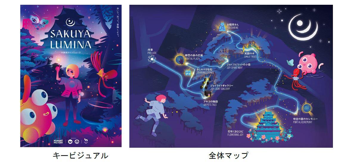 「サクヤルミナ」は、大阪城公園を舞台にした、歩いて体験する物語です。来場者を、友情、冒険、喜びをテーマとする物語の世界観に引き込みます。