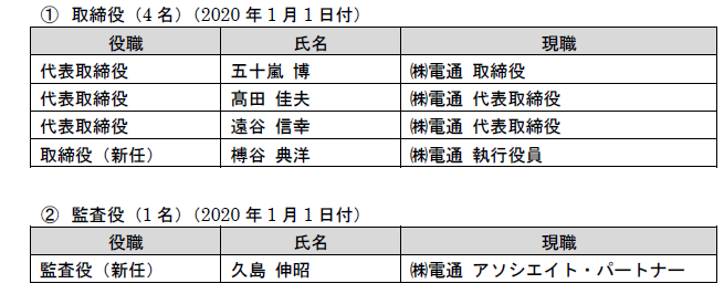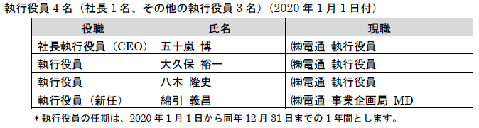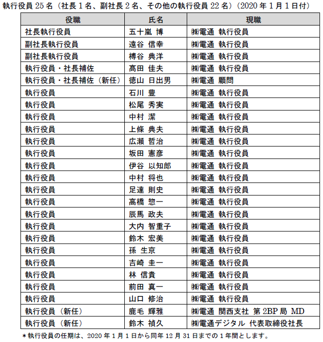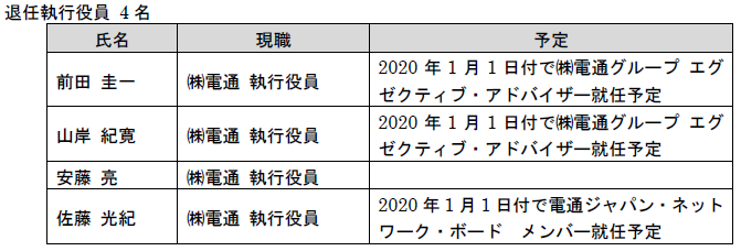 以下の当社(現「株式会社電通」)の執行役員は、2019年12月31日をもって退任する予定です。