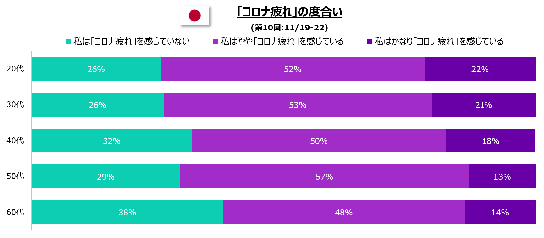 (図表5-2)「コロナ疲れ」の度合い:年代別 ※日本のみ