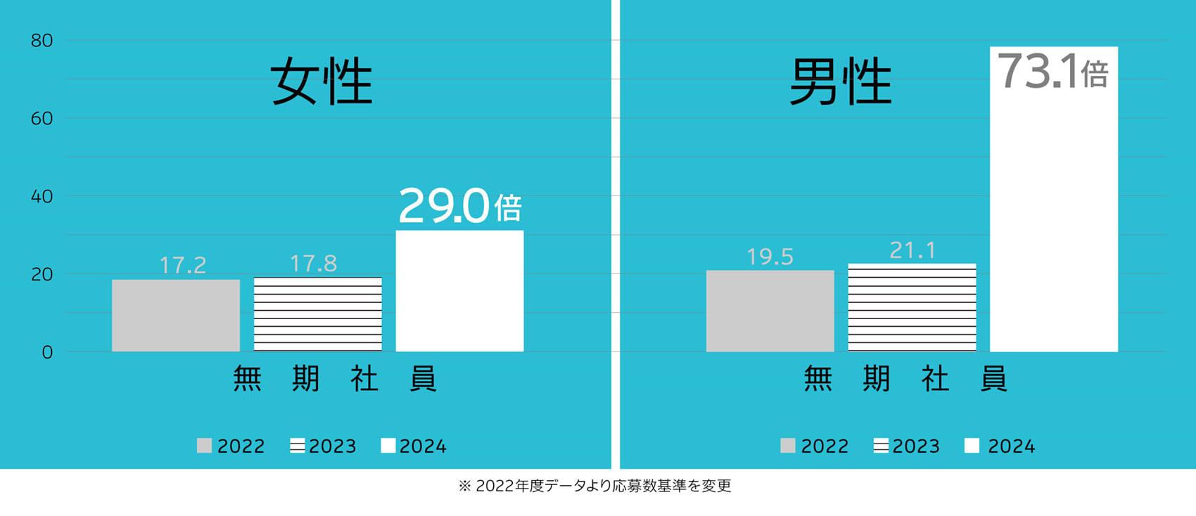 (労働者の募集に対する応募者数を採用者数で除した数値)